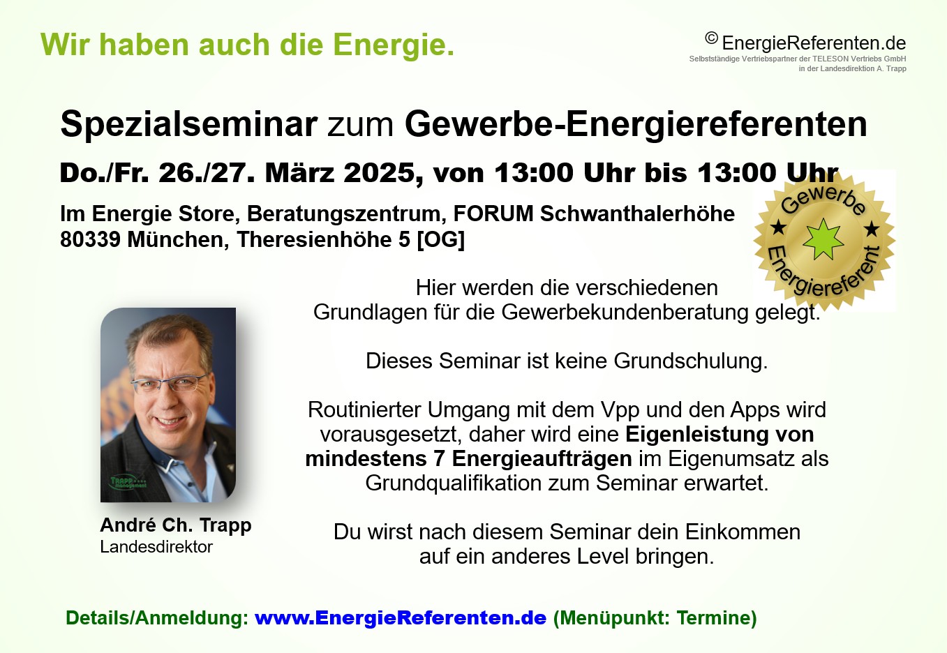 Ausbildung von Energiereferen als Gewerbespezialisten in MÜNCHEN
